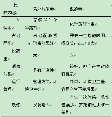 表1 紫外線消毒與氯消毒的比較